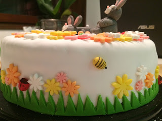 Pitkästä aikaa sain mahdollisuuden tehdä synttärikakun pikkuiselle 1-vuotta täyttävälle neidille. Toiveena oli kesäinen kakku. Alkuun kyllä hieman jännitin kakkua, koska päässä ei lähtenyt ensin yhtään raksuttamaan... Mä niin nautin kun saa tehdä pikku väkertelyjä kakkuun ja varsinkin jotain noin värikästä ja ihanaa!! Olen kovin tyytyväinen itse!