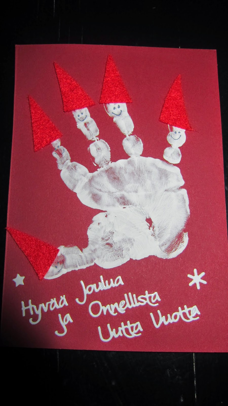 Joulukortteja teimme tänä vuonna muutaman kappaleen läheisillemme. Ihanan yksinkertaisia malleja löysin, mutta silti niin suloisia. On ihana askarrella neidin kanssa yhdessä, mutta vielä se on aika säätöä, joten pitäydytään helpoissa jutuissa.