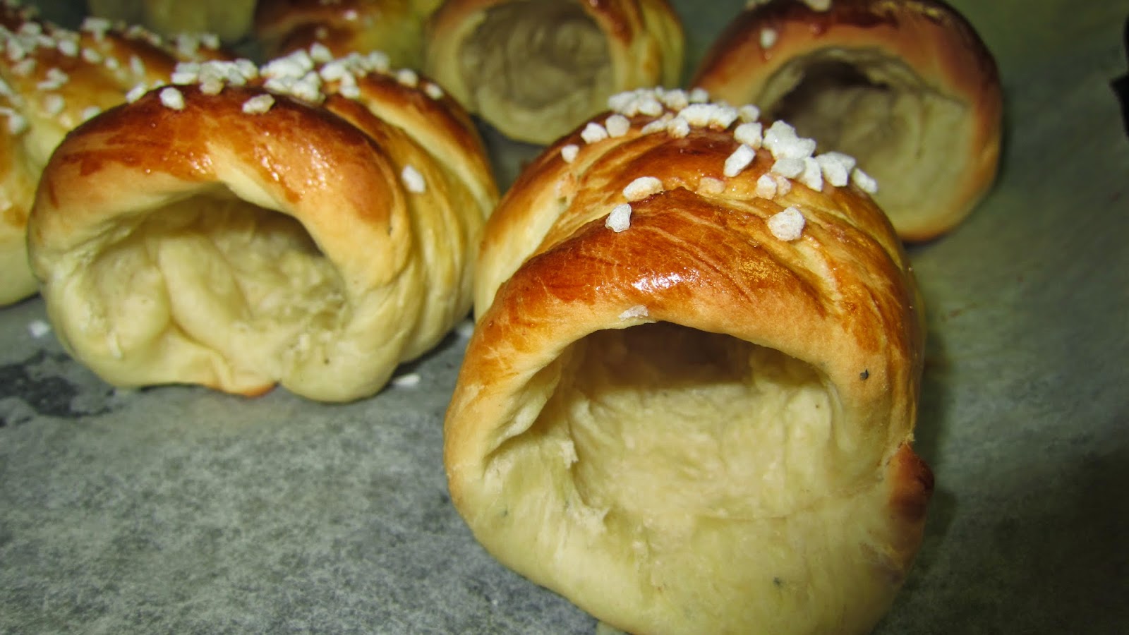 Facebookin Leivotaan-ryhmässä on jo hetken näkynyt kuvia näistä ihanista pullista!! Laskiaispullat ovat aina maistuneet minulle mansikkahillolla ja kermavaahdolla, joten nyt oli kiva kokeilla jotain muuta tyyliä pullalle. Hieman oli tekemistä enemmän, mutta mukavaa puuhaa. Tässä teille hieman kuvia laskiaispullien tekovaiheista!