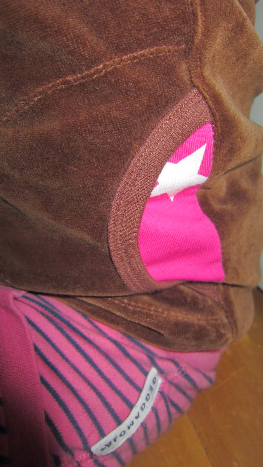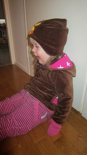 Heipsansaa!! Ajattelin esitellä tämän takin nyt näin pitkän ajan jälkeen. Takki on ollut ensimmäinen "isompi" ompelukseni joskus n.1 vuosi sitten. Tein sen koossa 74cm ja tyttäreni kokeilu sitä nyt uudelleen ja sehän mahtui edelleen. Tyttäreni vaate koko on tällä hetkellä 92-98cm. Hämmästyin! Enkä hieman helmasta lyhyt, mutta ihan käytettävä. Päällykangas on ruskea velour ja vuori on ihana pinkku tähti trikoo. Yksityiskohtana on pieni tasku toisella puolella, josta kurkistaa myös tähti trikoo. Olen ihan tyytyväinen tähän aikaansaannokseen, koska silloin olin vielä aloittelija ja kanttauskin sujui yllättävän hyvin. Tässä teille muutama kuva takista. Kuvaus ei ole minun juttuni, mutta muutaman julkaisukelpoinenkin kuva tuli. :)