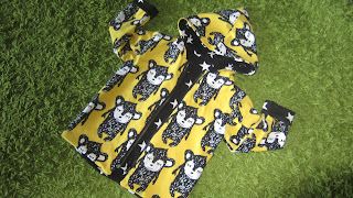 Kummipojallani on tänään nimpparipäivä ja halusin hänelle tehdä jotain kesäistä. Haluan tällä hetkellä harjoitella tuota bodyn ja kanttauksen tekemistä, joten päätin tehdä tälläisen pöllö kuosisen pikkupuvun sekä pipon lisäksi.