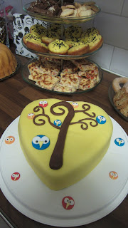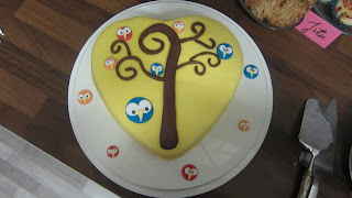 Tyttäreni täytti 3-vuotta ja hän halusi edelleen päättää itse millaisen kakun haluaa juhliin, Alkuun hän toivoi, että kakku on sydämen muotoinen ja väriltään keltainen. Neiti ehdotti kukka kakkua, mutta eihän se äitiä miellyttänyt, joten hieman ohjattuna taivuttelin neidin pöllöihin. Pääsimme siis lopulta sopimukseen kakusta!! Tässä teille siitä hieman kuvaa. Välissä on kinuski-vadelmatäyte, jonka bongasin kinuskikissan sivuilta.