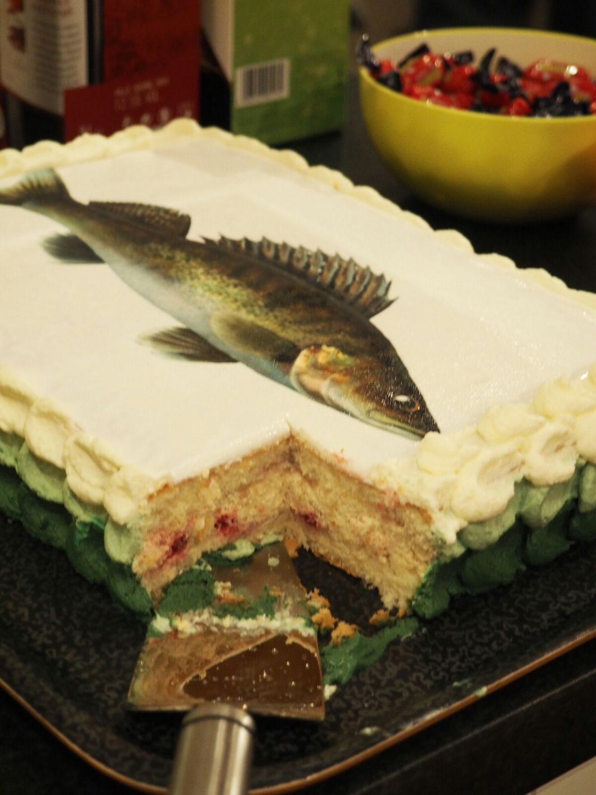 8. Levitä täyte jäähtyneelle pohjalle ja kääri tiukalle rullalle