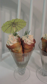 Tein pikaisesti isännälle ja itselleni pientä iltapalaa ja ihan hyviähän näistä tuli. Ehkä itse laittaisin seuraavalla kerralla hieman enemmän kalaa täytteeseen. Tässä teille myös tämä ohje, joka on poimittu kinuskikissan sivuilta. Rahka-voitaikina oli minulle uusi taikina tuttavuus ja pidin kyllä kovasti. Itselläni oli jo valmiiksi foliosta tehdyt kartion malliset muotit. Ohjeesta tulee noin 17 kpl.