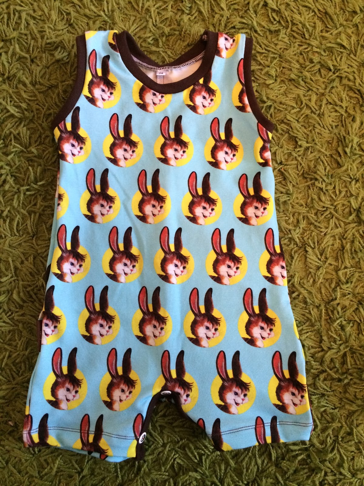 Lapsuuteni lemppari satukirjoissa oli Pupu Tupuna ja sitä ihanaa on saamaksissa nykyään myös kankaissa. Kerran päädyin ostamaan pienen palan tuota ihanaa turkoosi pohjaista Tupuna kangasta ja tänään sain niistä ommeltua kesäksi molemmille lapsille omat vaatteet. Esikoiselle t-paidan ja pikku jäbälle tuollaisen hihattoman kesähaalarin.